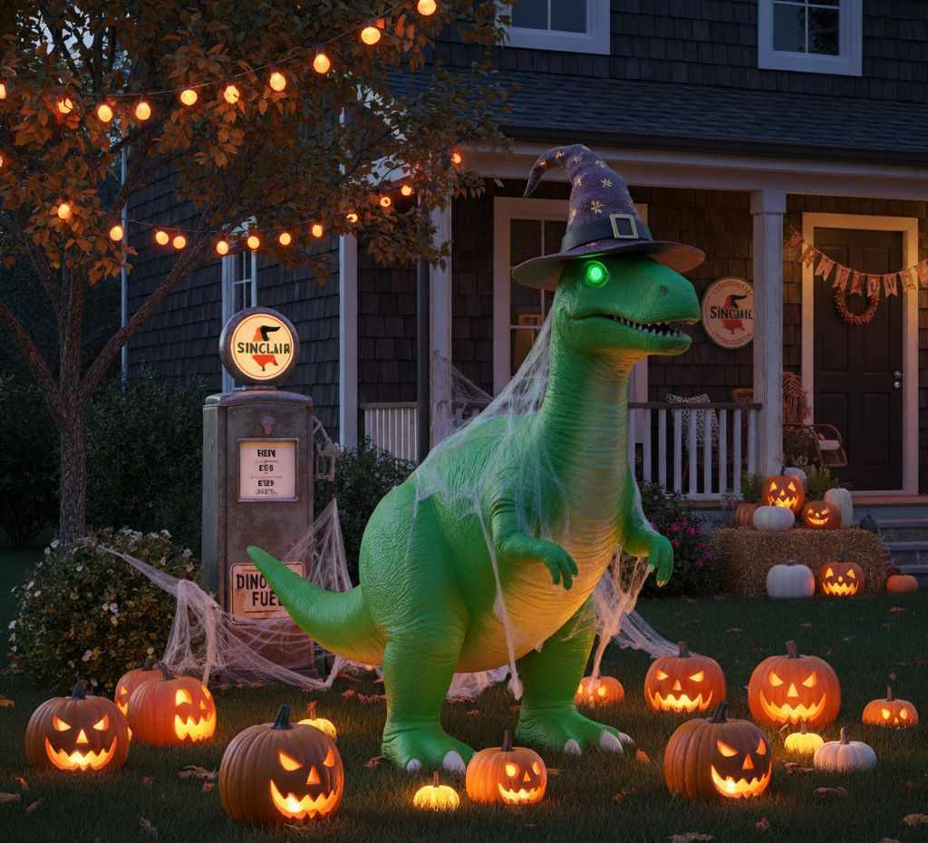 Decorating with iconic figures isn’t just about recreating the past—it’s about blending eras in fresh, artistic ways. The Sinclair dinosaur perfectly embodies this mix of history and creativity. It’s instantly recognizable, emotionally resonant, and adaptable for both playful and elegant décor concepts. For Halloween, it bridges nostalgia and imagination, giving your setup a unique edge that few modern props can match.